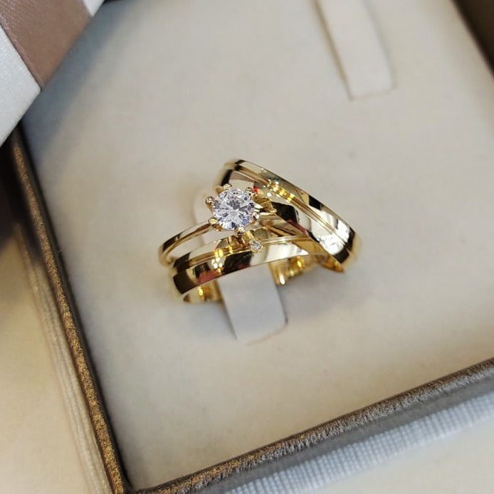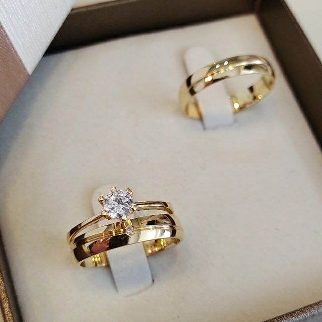 Par de Aliança Noivado/Casamento Ouro 750/18k - Aurora 4mm Meia Cana Polida + Anel Brinde