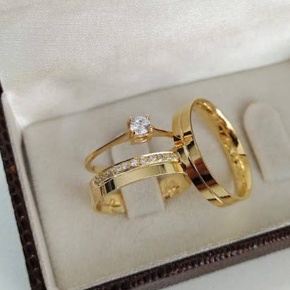Par de Aliança Noivado/Casamento Ouro 750/18k - Carambola 4mm Reta Polida + Anel Brinde