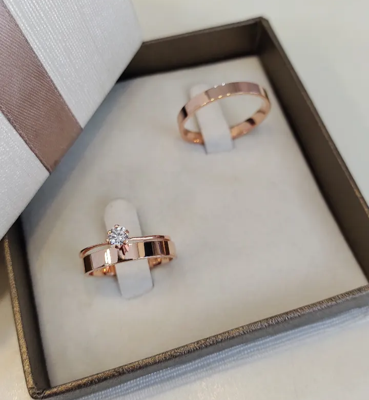 Par de Aliança Banhada - Cercare Rosé 3mm Reta Polida + Anel Brinde