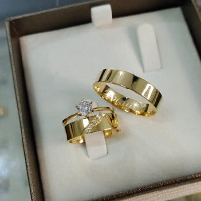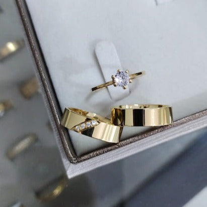 Par de Aliança Noivado/Casamento Ouro 750/18k - Isla 5mm Reta Polida + Anel Brinde