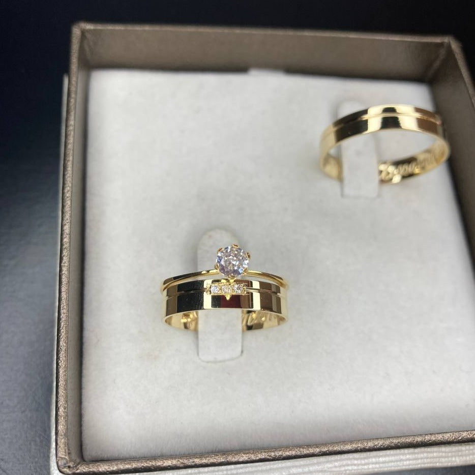 Par de Aliança Noivado/Casamento Ouro 750/18k - Modena 4mm Reta Polida + Anel Brinde