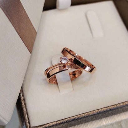 Par de Aliança Noivado/Casamento Ouro Rose - Xodó Rosé 3mm Chanfrada Polida + Anel Brinde